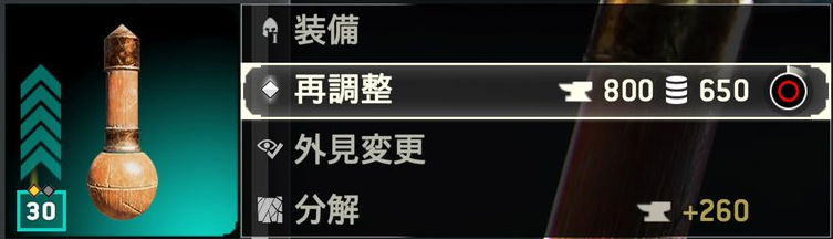 武具レベルが上限の30に達した後も再調整として2段階アップグレードできる。